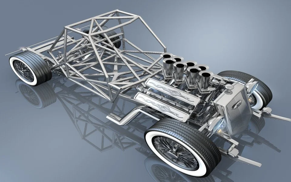 Frame straightening and reinforcement for race and offroad vehicles to restore chassis geometry within race‑legal tolerances.